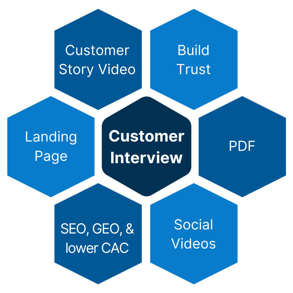 Get one complete case study with all the assets you need to prove credibility and win new clients. We take care of the interview, content creation, and delivery.